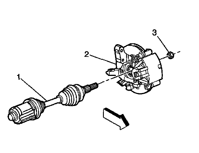 3. Install the wheel drive shaft to the hub and bearing (2).