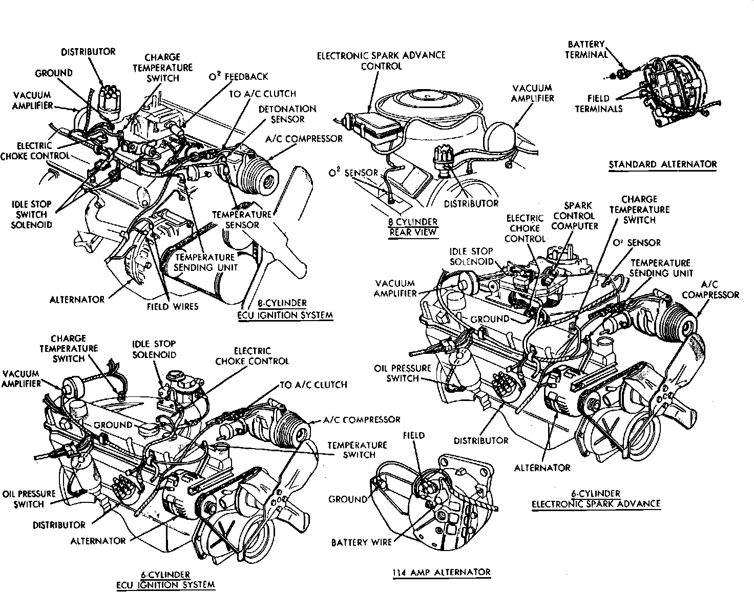 Electronic Feedback Carb. system. Component location. 8 cyl. engine: