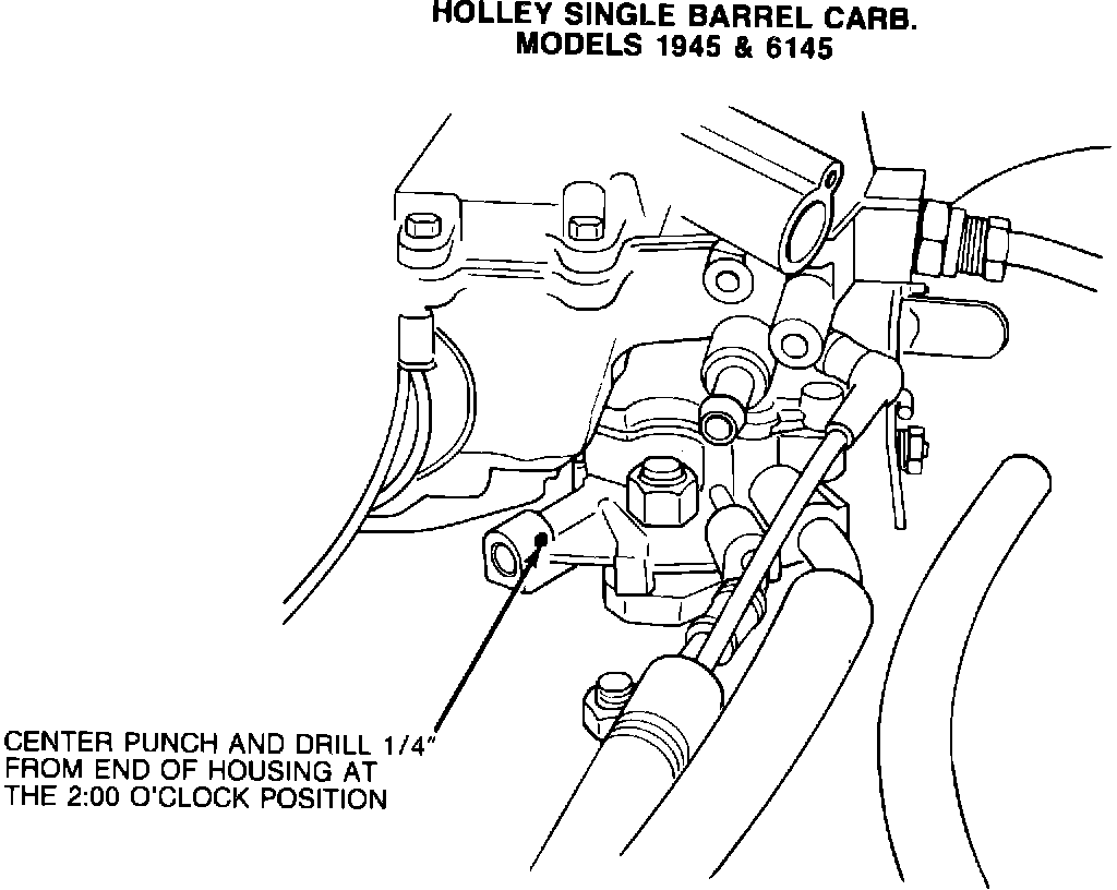 2. Locate and center punch 1/4" from end of mixture screw housing. The center punch mark should be indexed at about the 2:00 o'clock position (see Figure 2).