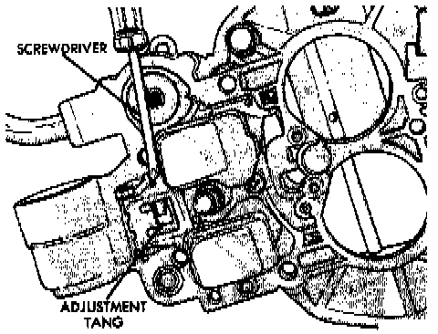 Using a suitable depth gauge, measure float drop. To adjust, use a small screwdriver to bend tang.