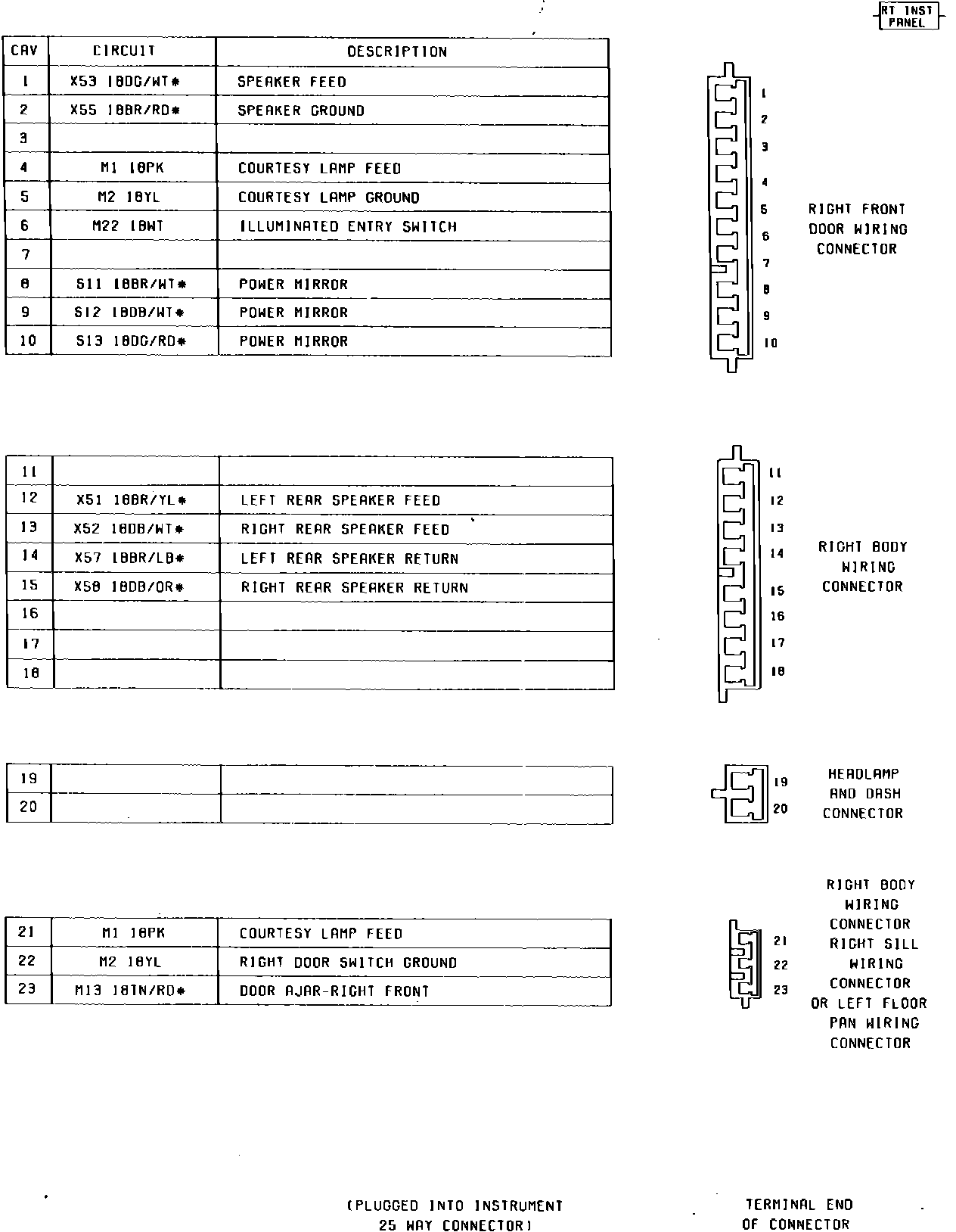 Fig. 10 Instrument Panel To Body Connector (25 Way, Right Side, Part 2 of 2):