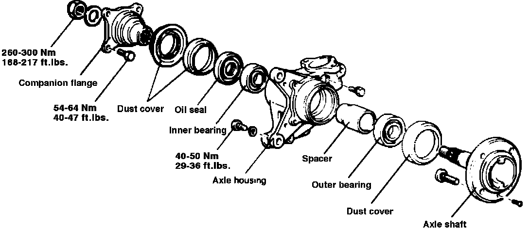 7. Using suitable hammer free axle shaft from bearings, then remove nut, companion flange and axle shaft.