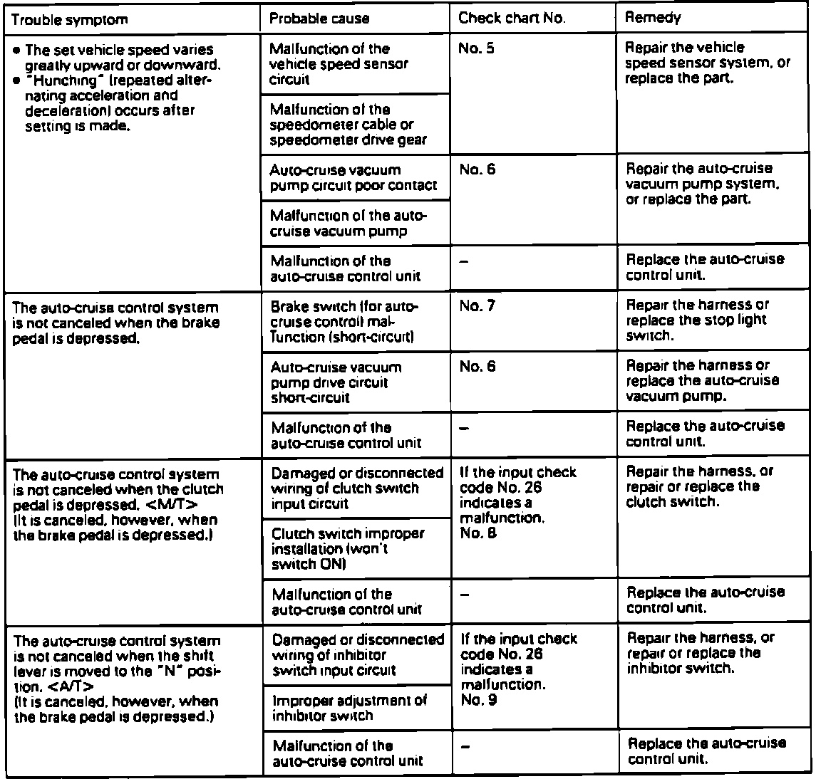 Refer to the appropriate circuit check chart indicated. Refer to Cruise Control/Testing and Inspection/Procedures/Diagnostic Charts.