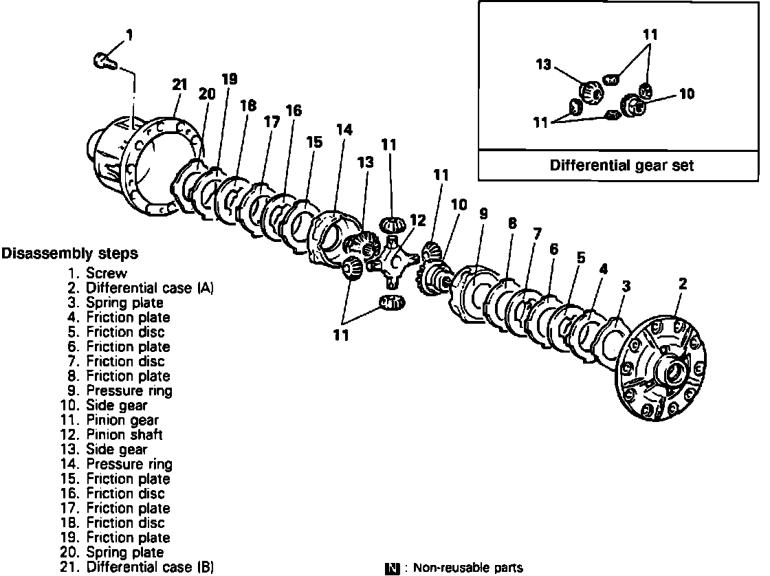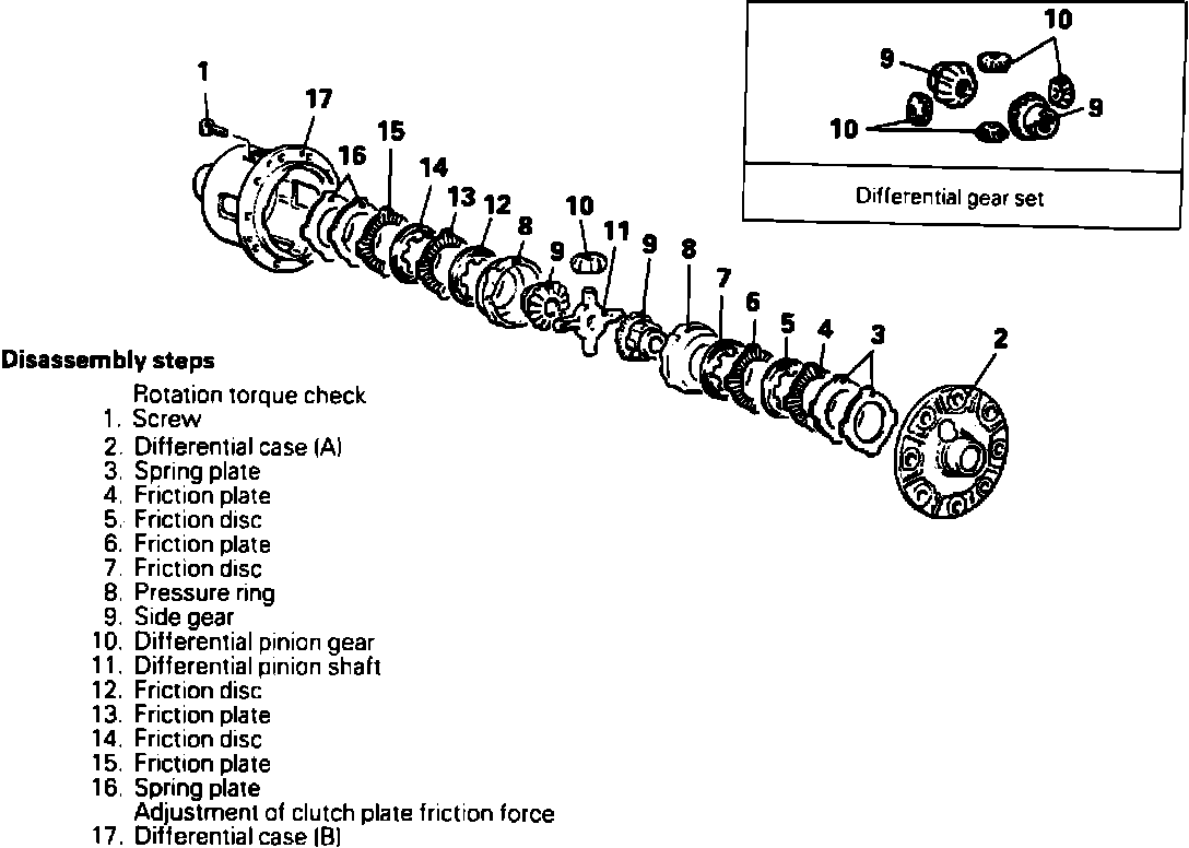 PREDISASSEMBLY INSPECTION1. Inspect rotation torque of limited slip differential as follows: