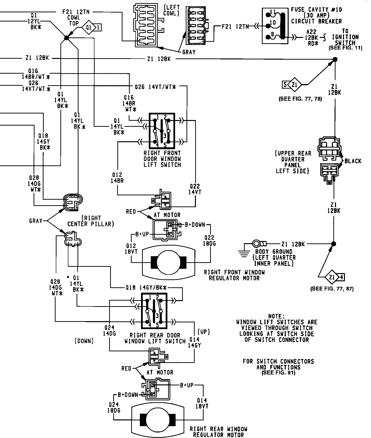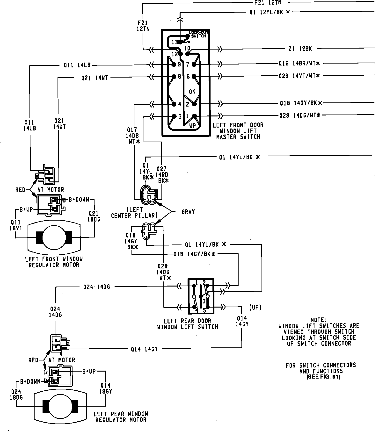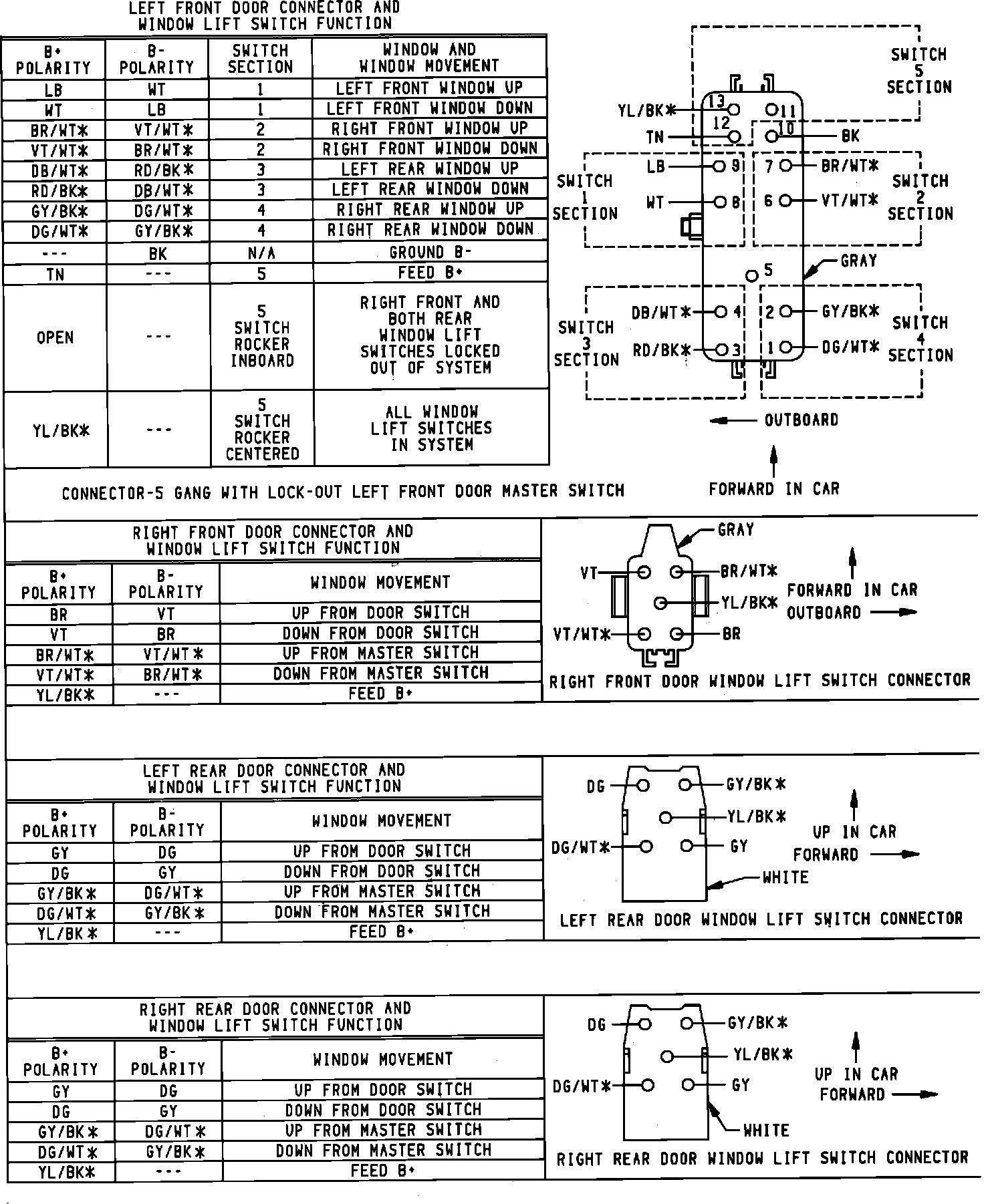 Power Window Connector And Switch Function: