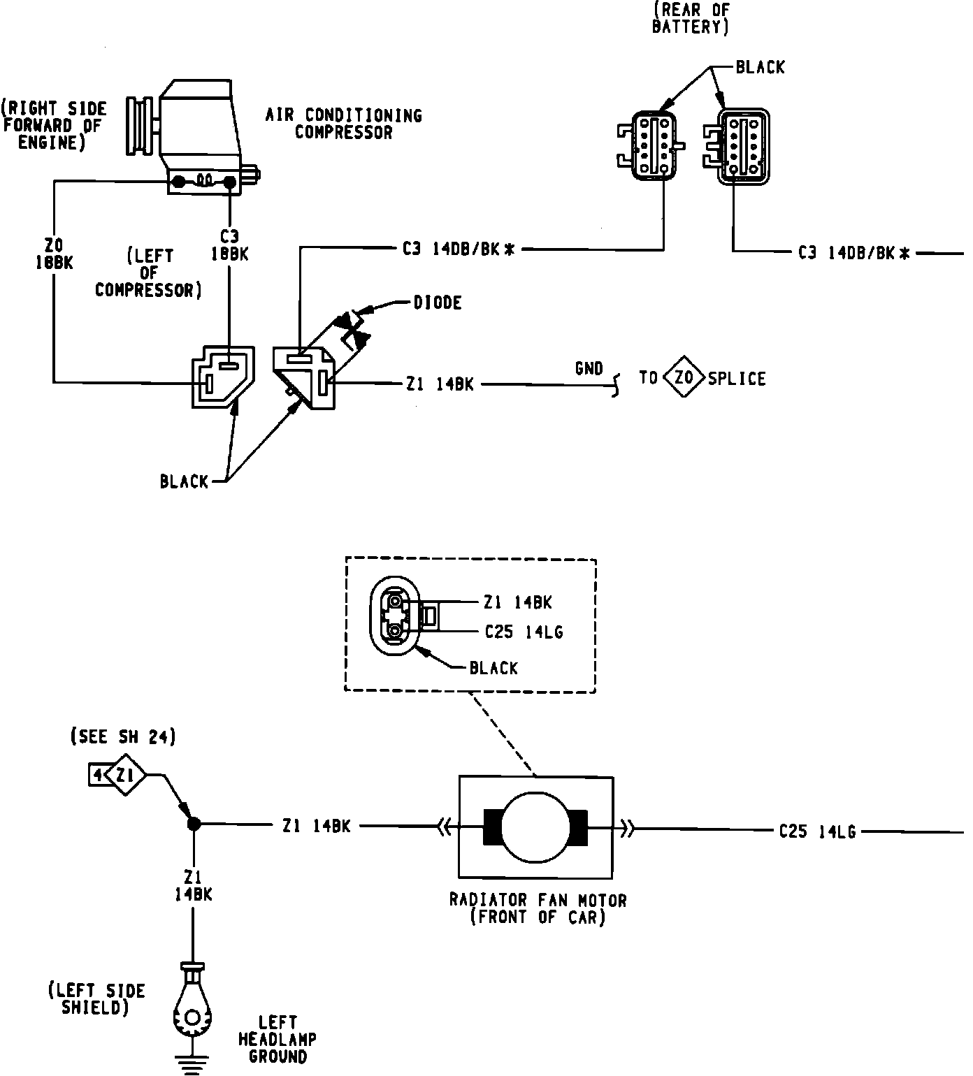 Radiator Fan System With A/C And Heater Wiring Diagram (part 1 Of 2):