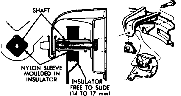The engine mounts incorporate slotted bolt holes to permit side-to-side positioning of the engine, thereby affecting length of driveshaft. To check driveshaft length proceed as follows.