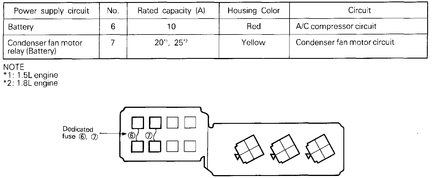 Dedicated Fuse 6-7 (A/C Compressor Clutch Relay Bracket In Engine Compartment: