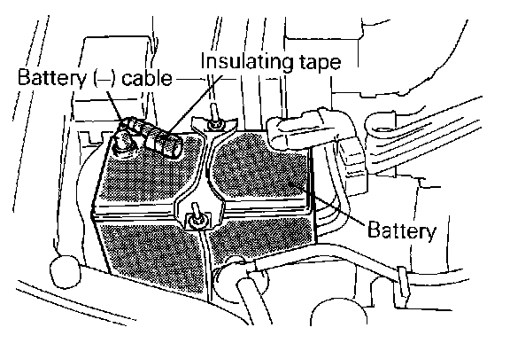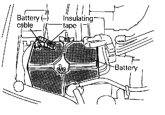 5. Turn the ignition key to the "LOCK" position, disconnect the negative battery cable and tape the terminal.
