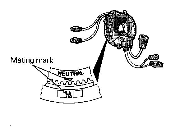 Align the mating mark and "NEUTRAL" position indicator of the clock spring, and, after turning the front wheels to the straight-ahead position, install the clock spring to the column switch.