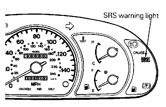 2. Reconnect the negative battery terminal.Turn the ignition switch to "ON". Check if the SRS warning light illuminates for about 7 seconds and then stays off. If yes, SRS system is functioning properly, if no, see Testing and Inspection. Flow of Diagnosis