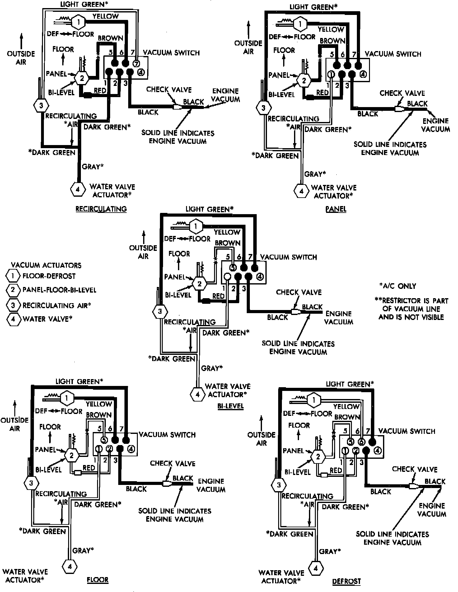 Air Conditioning & Heater Vacuum Hose Routing. Acclaim & Spirit: