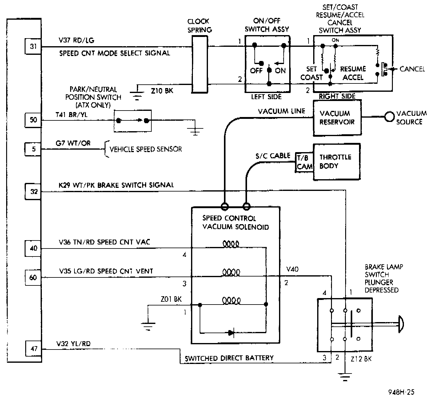 - This schematic is included here to show the vacuum for the vehicle speed control system.