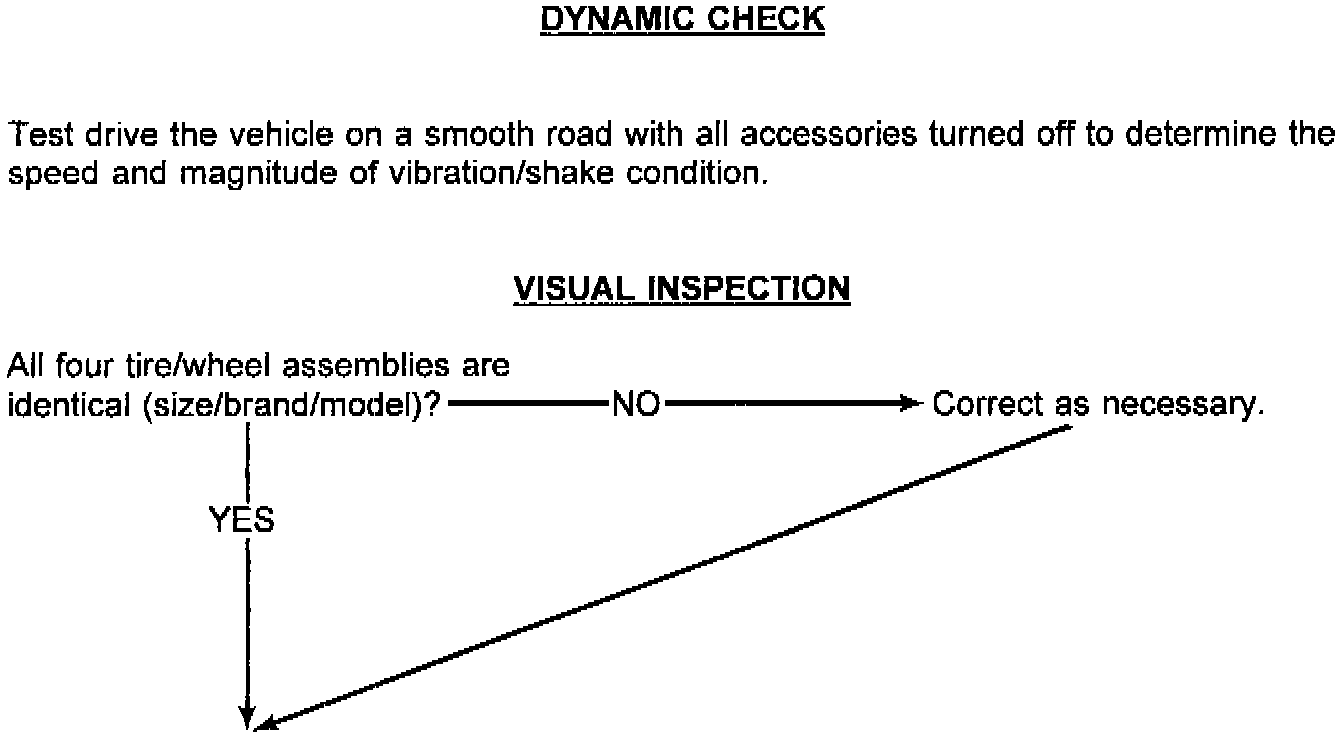 Dynamic Check, Visual Insp., Road Test, Balance Tires, 2nd Road Test. Align Front End