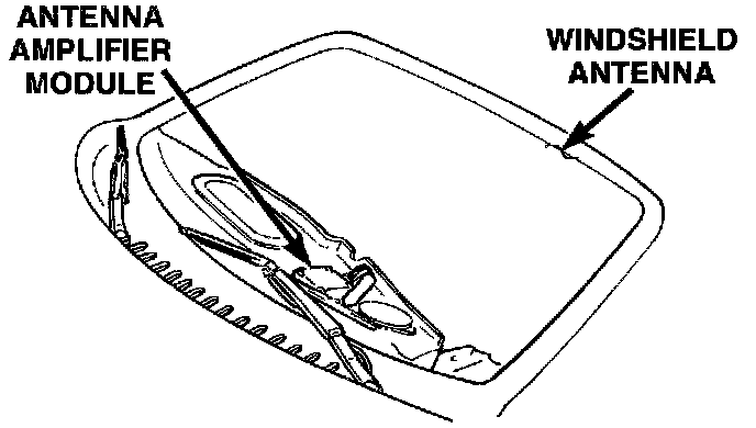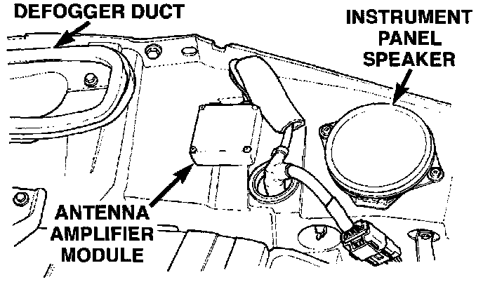 - Windshield antenna lead connector in the antenna amplifier The antenna amplifier is located under the instrument panel top cover and mounted on passenger side of the defogger duct.