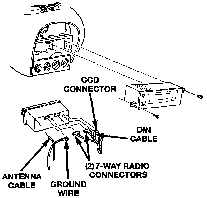 3. Ensure that the radio and ignition switch are OFF. DO NOT disconnect the radio with ignition switch ON.