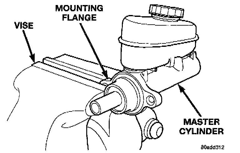 Caution: When mounting master cylinder in vise, clamp the master cylinder only by the mounting flange. Do not clamp on primary piston, seal or body of master cylinder.