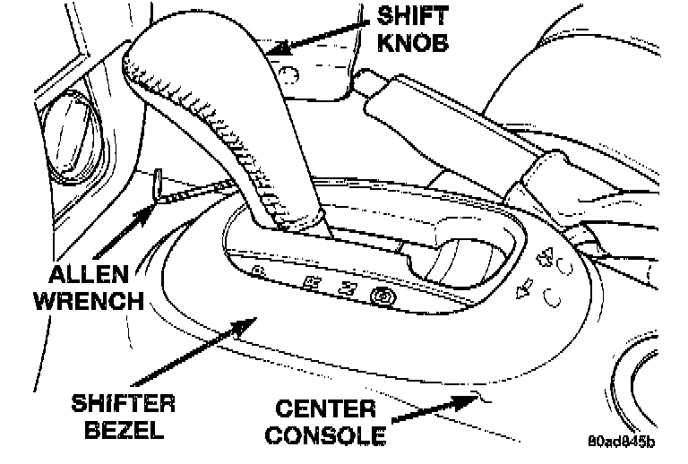 1. Remove shift knob from shifter. Shift knob is attached to shifter using an allen head set screw. Access to set screw is from the front side of the shift knob.