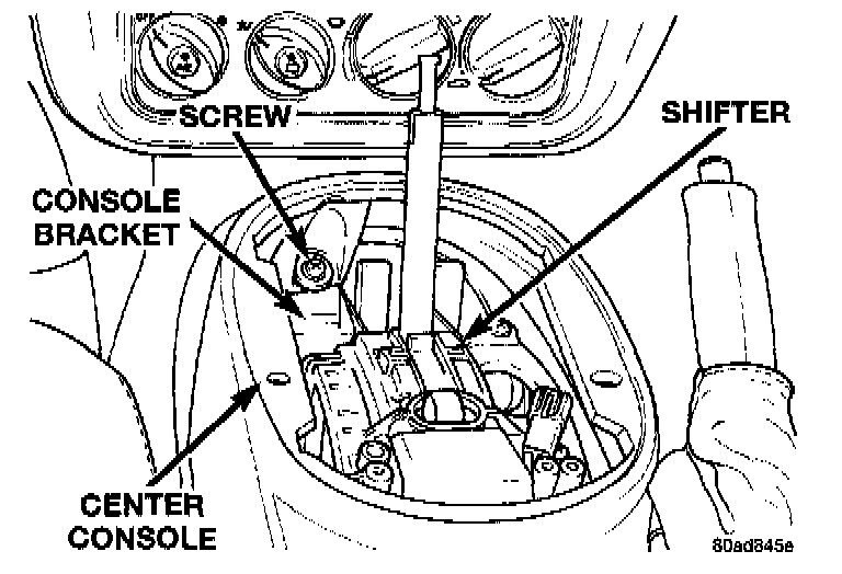 6. Raise park brake hand lever to the applied position. This is required for clearance to remove center console.
