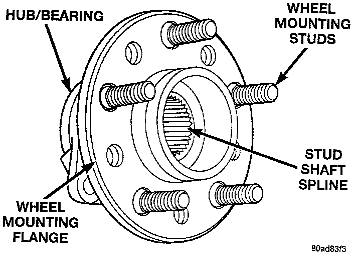 The hub/bearing used on the rear of this vehicle can only he serviced as a complete unit. No attempt should ever be made to disassemble a rear hub/bearing unit in an effort to repair it or replace the bearing or the hub as a separate part of the unit.