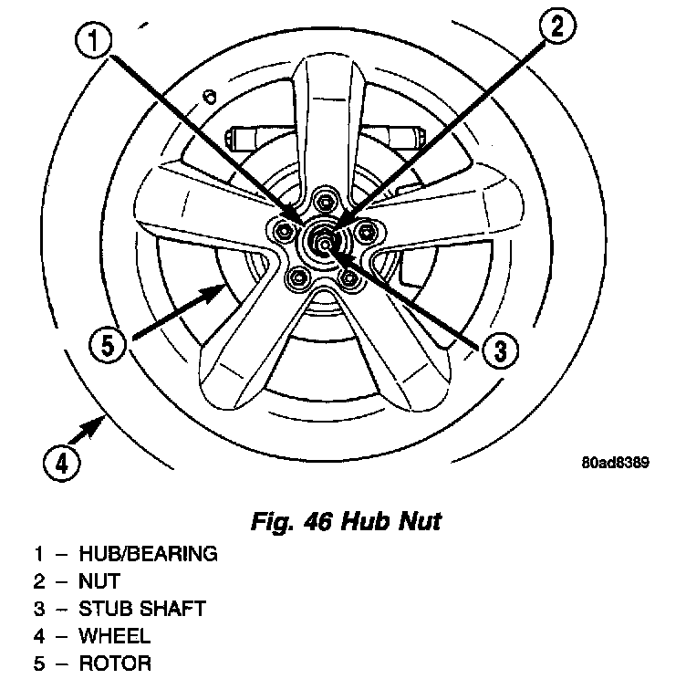 CAUTION: When pressing the stub shaft out of the hub/bearing, do not exceed the distance of one inch from rear surface of the knuckle. If the stub shaft is pressed back further the driveshaft joints can be damaged.