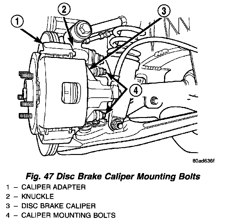 5. Remove the 2 bolts mounting the rear disc brake caliper to the caliper adapter.