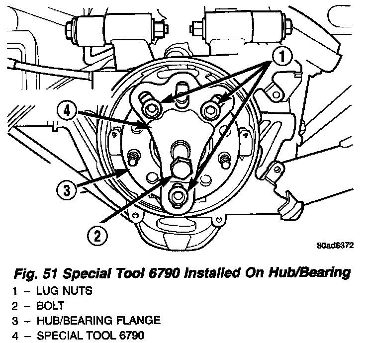 11. Using Puller, Special Tool 6790, or equivalent partially press the stub axle out oft hub/bearing. The stub shaft is to be pressed out of the hub bearing until the rib on the C/V joint housing is one inch back from the real surface of the knuckle.