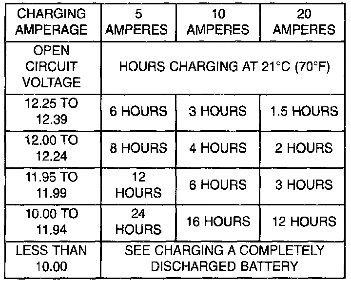 A completely discharged large heavy-duty battery may require more recharging time than a completely discharged small capacity battery, refer to for charging times.