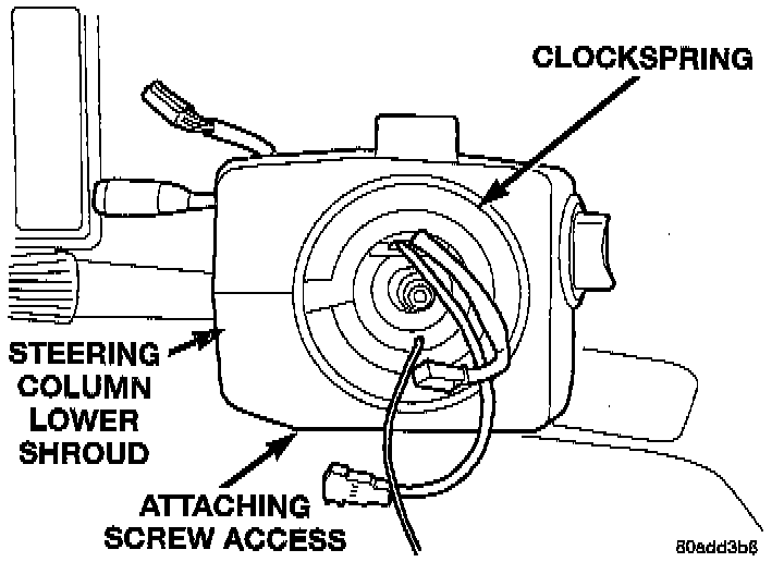 NOTE: If the wiring harness is not long enough to allow removing the clockspring with the harness attached, remove the wiring harness from the clockspring. Do not put a strain on the wiring harness when removing clockspring.