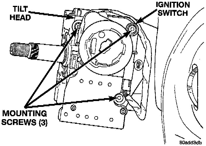 16. Remove the 2 screws mounting the multi-function switch to the tilt head on the steering column. Remove multi-function switch, with wiring harness attached, from steering column