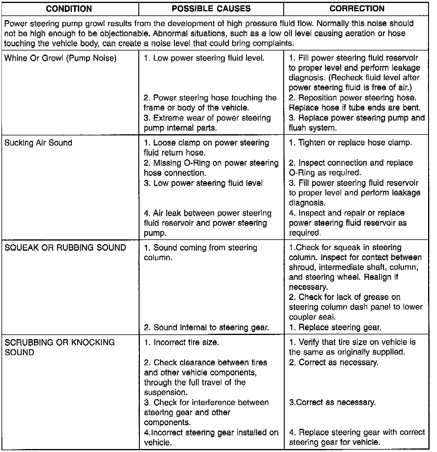 There is some noise in all power steering systems. One of the most common is a hissing sound evident at standstill parking. Hiss is a very high frequency noise similar to that experienced while slowly closing a water tap. The noise is present in every valve and results from high velocity fluid passing valve orifice edges. There is no relationship between this noise and the performance of the vehicles steering system. Hiss may be expected when the steering wheel is at the end of its travel or slowly turning when the vehicle is at a standstill.