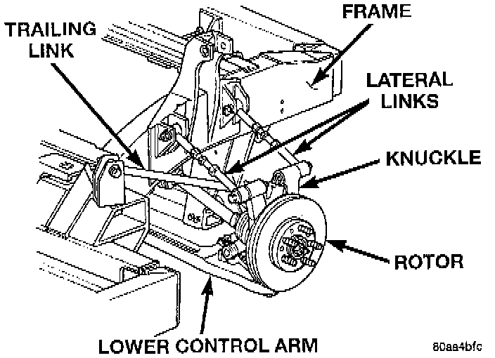 The lateral links, trailing arms and knuckles are normally replaced only when the part has been damaged or when the vehicle has been involved in an accident. If a suspension part has been damaged, be sure to check the underbody dimensions of the car. If the underbody dimensions are not correct, the frame of the vehicle must be straightened, before replacement suspension components are installed.