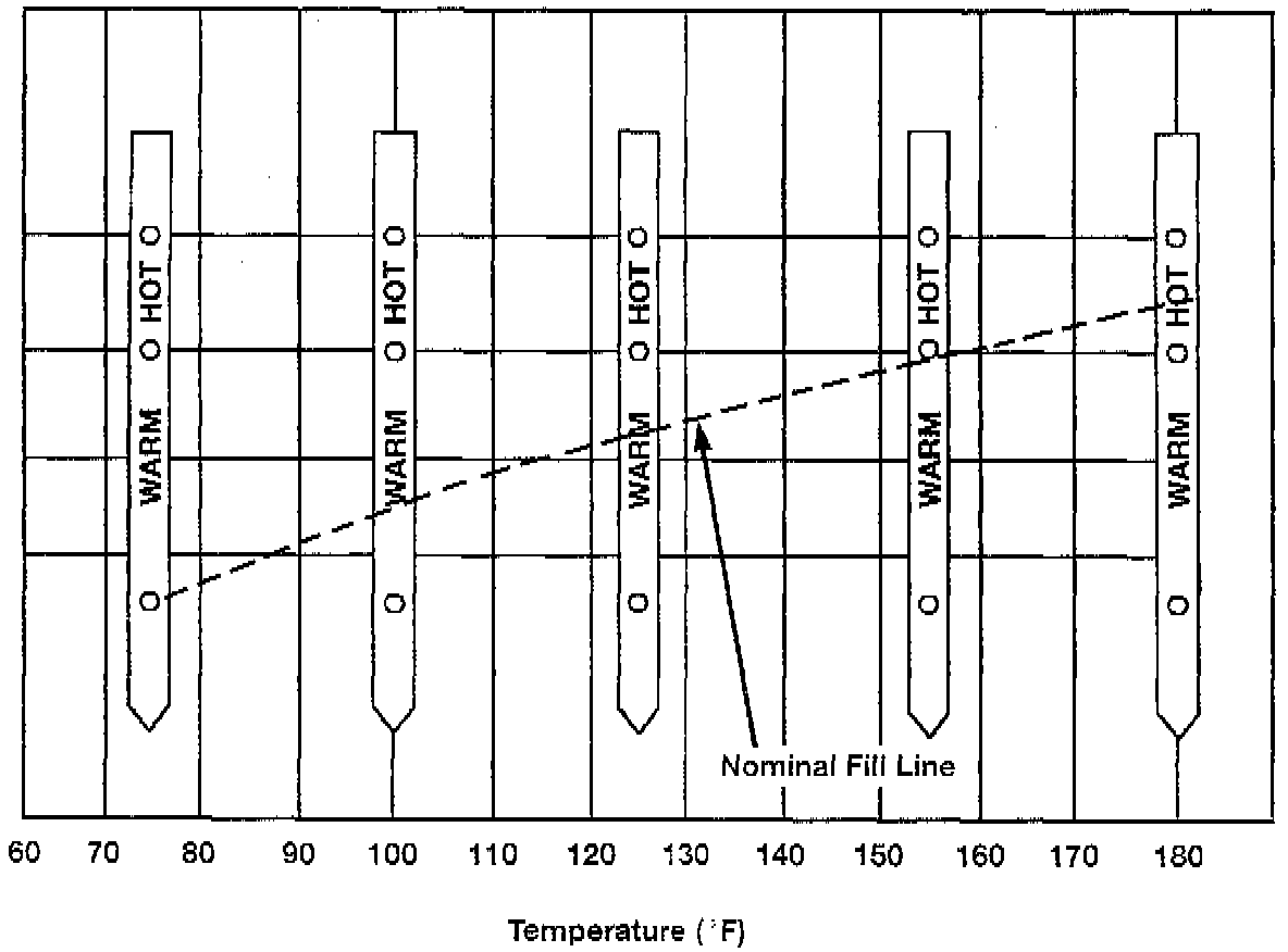 6. Adjust transmission fluid level shown on the dipstick according to the chart.