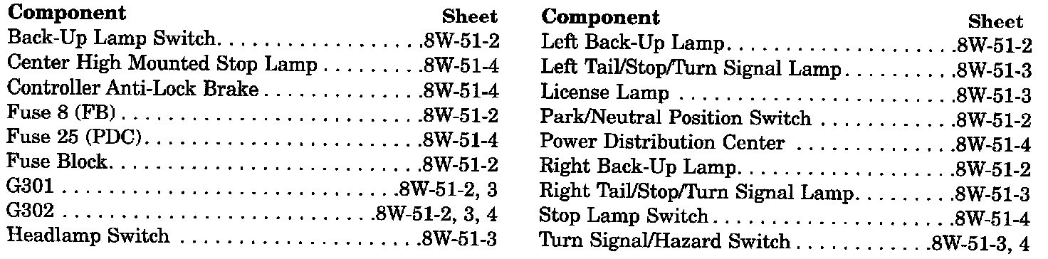 Rear Lighting Component Index: