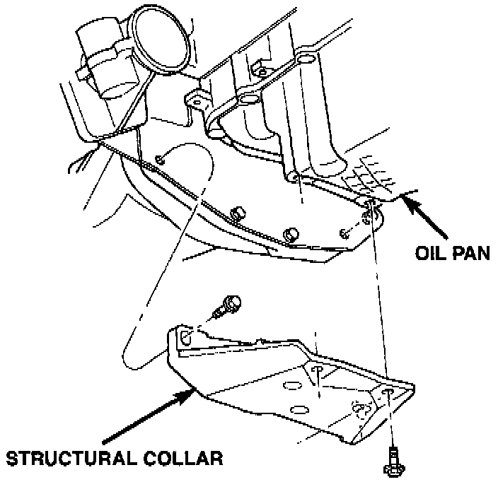 CAUTION: The torque procedure for the structural collar must be followed, as damage to oil pan or collar could occur.