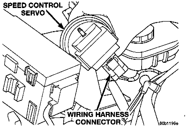 5. Remove the wiring harness connector from the speed control servo. Then remove the routing clip for the speed control servo wiring harness from the speed control servo mounting bracket.