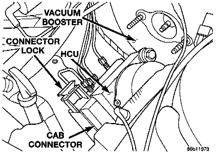 CAUTION: Do not apply a 12 volt power source to any terminals of the 25 HCU connector when disconnected from the Controller Antilock Brake (CAB).