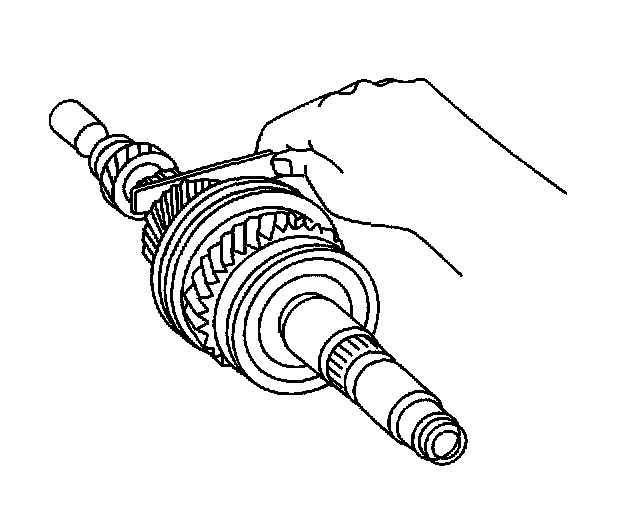 108. Using a feeler gage, measure the clearance between the synchronizer ring and the gear spline end. Minimum clearance is 0.70 mm (0.0276 inch). If the clearance is less than the minimum, replace the synchronizer ring.
