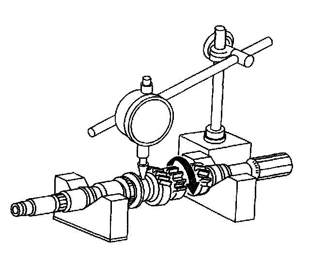 84. Using a dial indicator, check the output shaft journals for runout. Maximum runout is 0.03 mm (0.0012 inch).