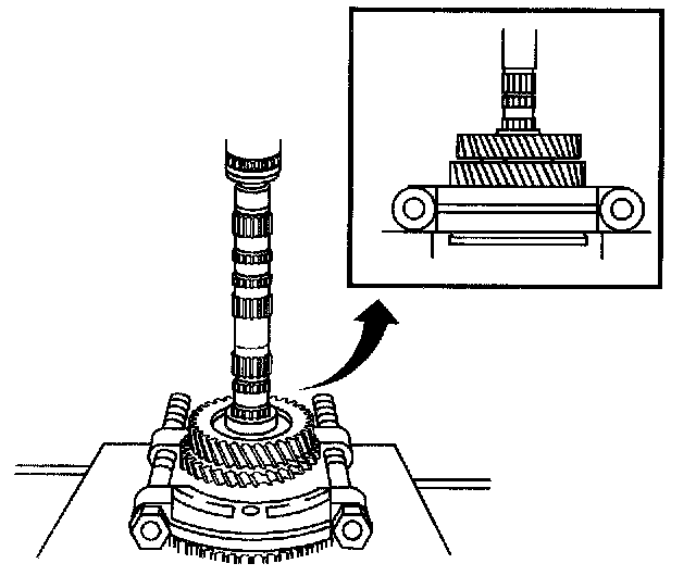 97. Using a press, remove the reverse gear assembly, 1st gear and the No. 1 synchronizer from the output shaft.