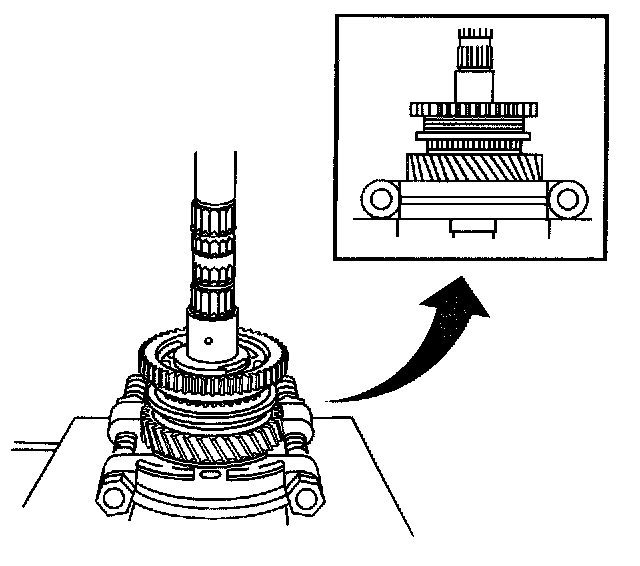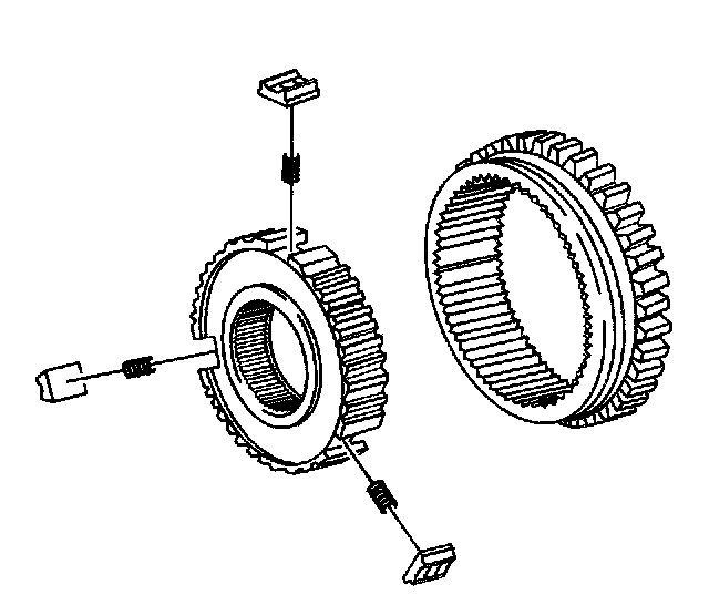 105. Check the 1st gear braking action of the synchronizer ring. Turn the synchronizer ring in one direction while pushing it into the gear cone. Ensure that the ring locks. Replace the ring if necessary.