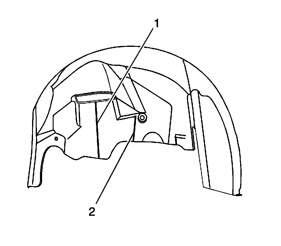 3. Remove the rear wheel housing, pre-cut the liner in the areas (1, 2) to remove.