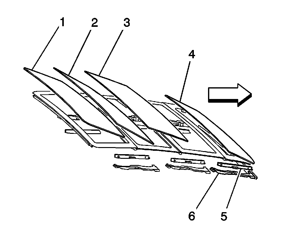 1. Position the sunroof window (2 or 3) into the opening.