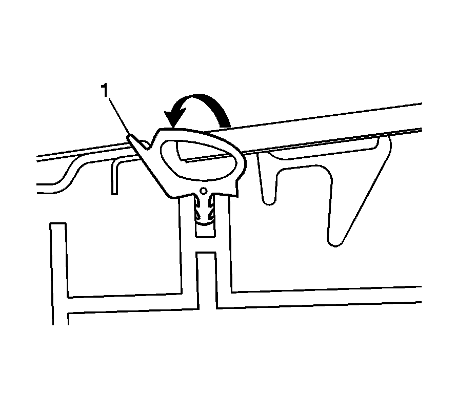 4. Starting in the rear corners of the seal channel, firmly press the window seal (1) into place, working any excess seal length toward the center, seating the remainder of the seal across the rear of the sunroof opening.