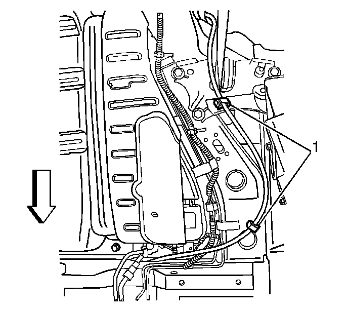 12. Remove the park brake cable and pass-thru grommet (4) from the body and remove the cable from the vehicle.