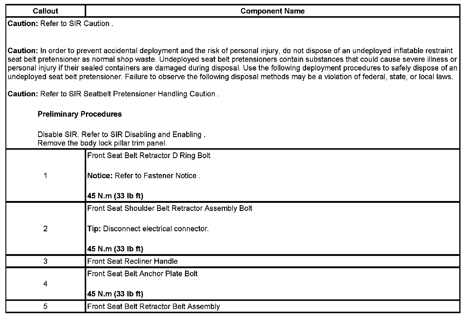 Seat Belt Retractor Pretensioner Replacement - Front (Convertible)