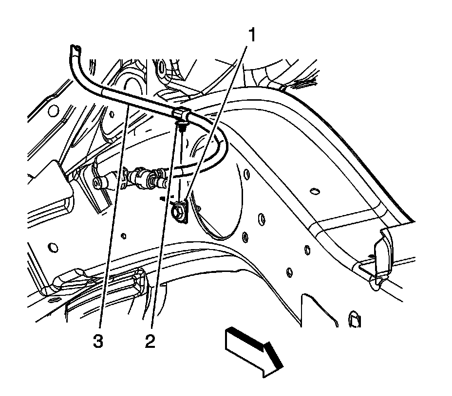 7. Remove the clutch hydraulic hose (3) from the vehicle.