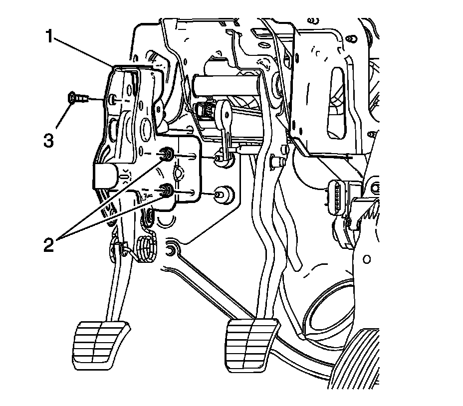 2. Install the clutch pedal mounting nuts (2). HAND TIGHTEN ONLY.