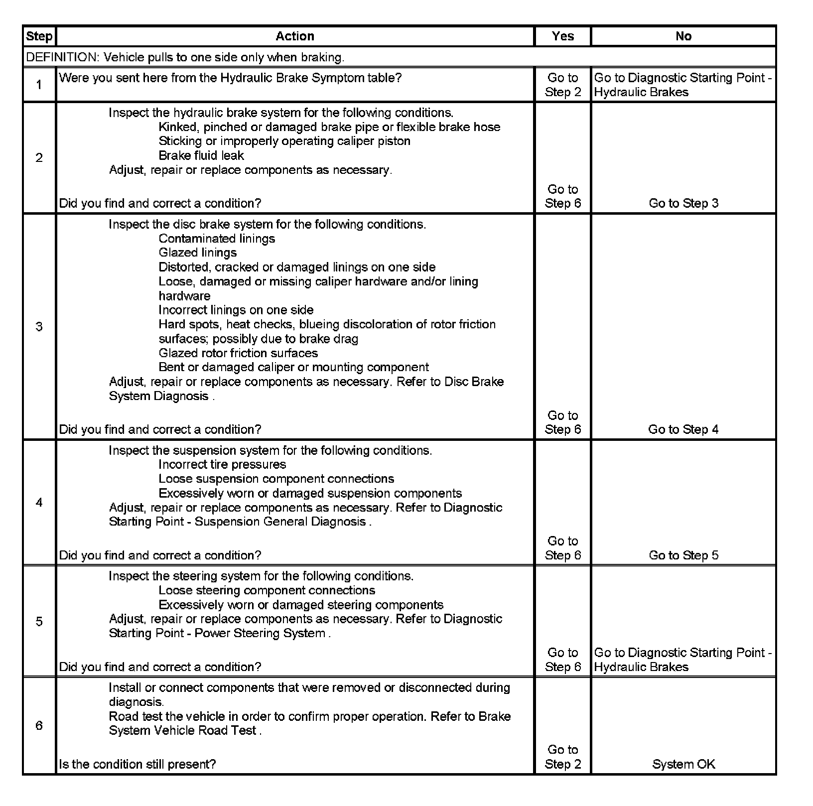 5. Steering components that are not operating properly may cause a disturbance to the vehicle during application of the brake system.