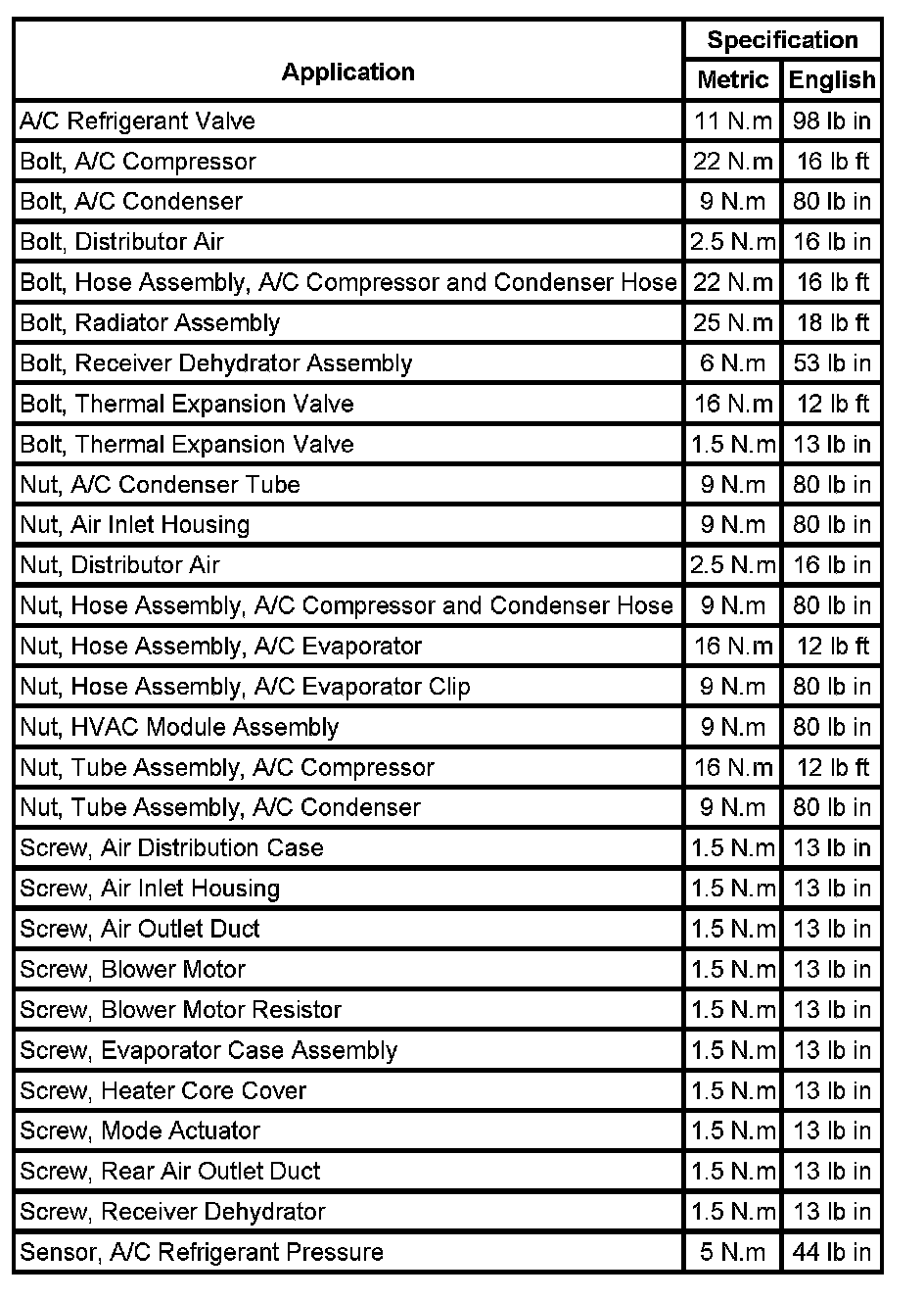 Fastener Tightening Specifications